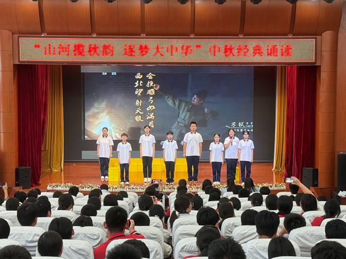 9月30日,在秋风送爽、丹桂飘香的时节,我校主题为“山河揽秋韵 逐梦大中华”体育艺术节的中秋经典诵读活动隆重举行。活动由八年级语文备课组老师精心策划,师生在此聆听经典诗词,感受中华优秀传统文化魅力。