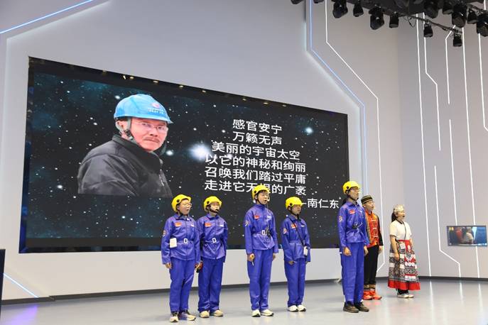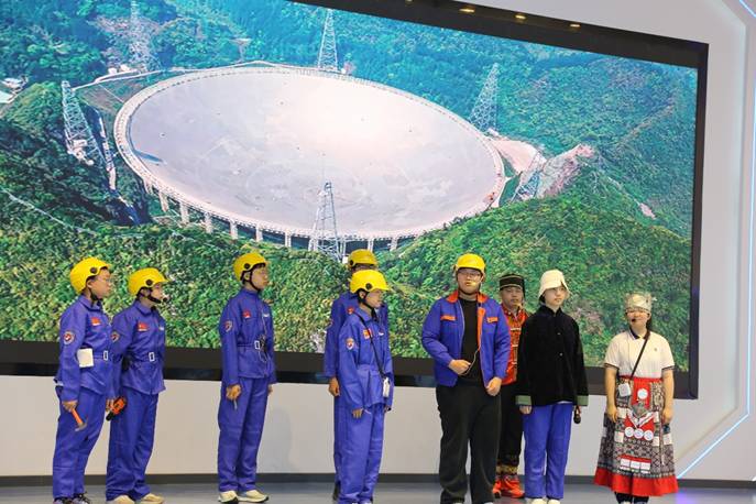 随后语文组带来精品节目:七年级学生朗诵《苍穹之下,少年追光》,融合司南、天眼、量子、元宇宙等古今科技意象,以铿锵之声诉说少年科技梦与强国志;八年级学生演绎情景剧《拥抱科学,天眼筑梦》,再现南仁东团队攻坚克难、筑梦天眼的感人历程,用青春视角致敬大国重器,赢得全场热烈掌声。