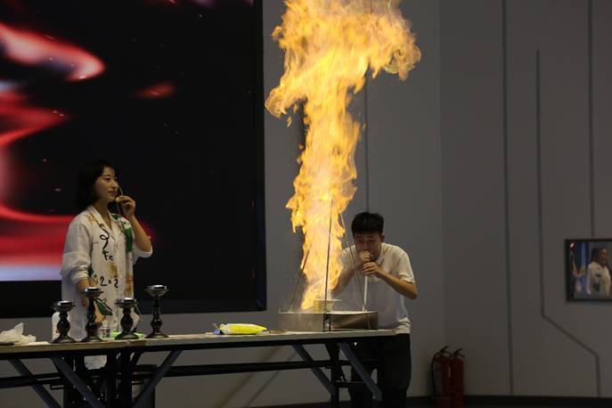 随后,河南省科技馆的老师带来科普展示活动《奇思妙火》,通过趣味实验揭示科学原理,引发了同学们的阵阵惊叹与积极参与。