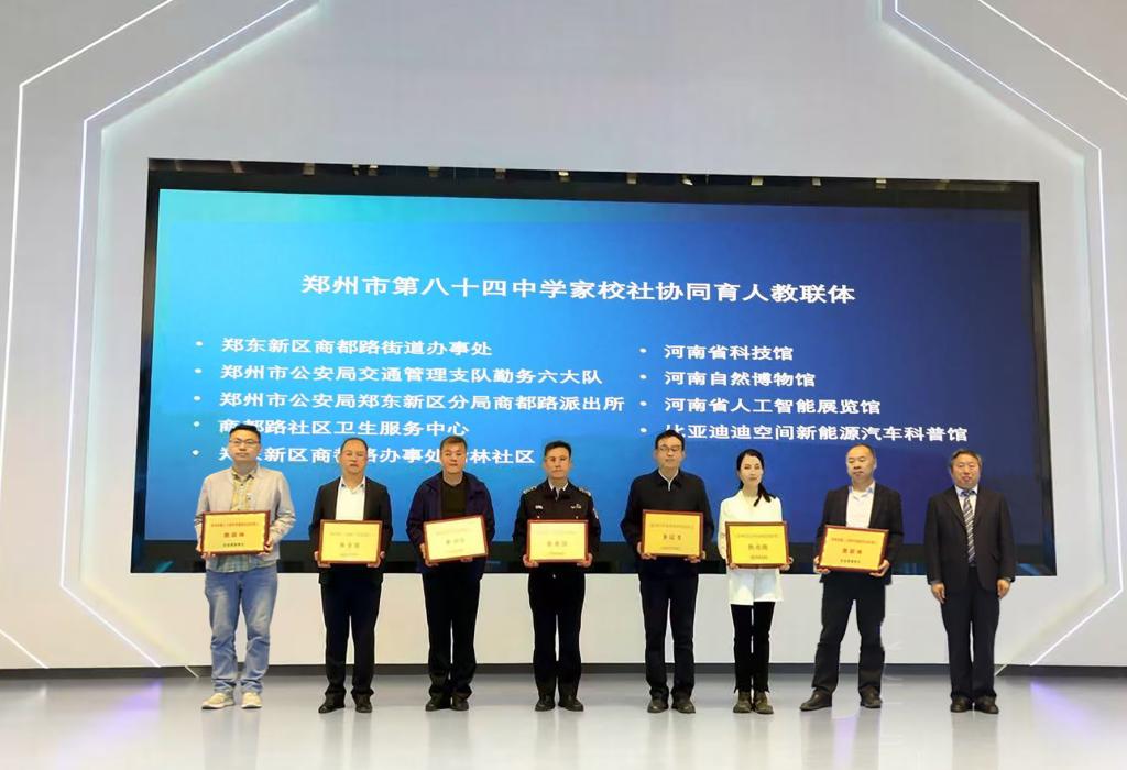 河南省科技馆副馆长侯家选、河南自然博物馆科学传播部主任肖乐、河南省人工智能展览馆及河南省人工智能学会副理事长过金超、郑州市公安局交通管理支队勤务六大队办公室主任沙显华、郑州市公安局郑东新区分局商都路派出所副所长李小刚、商都路社区卫生服务中心主任王学莉、比亚迪迪空间新能源汽车科普馆馆长袁祥龙、比亚迪迪空间总监霍全喜、河南大学汪顺舟博士、郑州市第八十四中学校长常慧钦、副校长范文礼、副校长李慧出席开幕仪式。