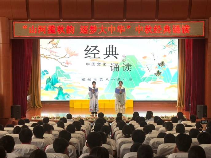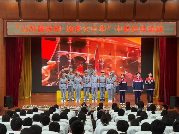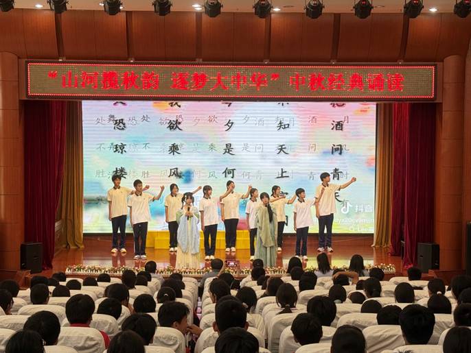 9月30日,在秋风送爽、丹桂飘香的时节,我校主题为“山河揽秋韵 逐梦大中华”体育艺术节的中秋经典诵读活动隆重举行。活动由八年级语文备课组老师精心策划,师生在此聆听经典诗词,感受中华优秀传统文化魅力。