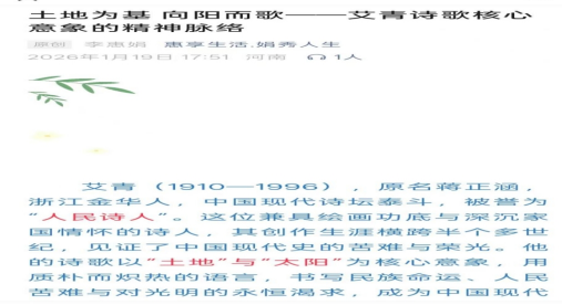 在名著阅读板块,李惠娟老师聚焦九年级必读书目《艾青诗选》,通过公众号开展整本书阅读专项指导,拆解阅读方法、梳理核心考点、精讲重点篇目,为学生搭建系统的名著阅读框架。经过针对性指导,九年级学生掌握了整本书阅读的答题逻辑与思路,期末考试整本书阅读题型作答更具条理,得分效果显著优化。